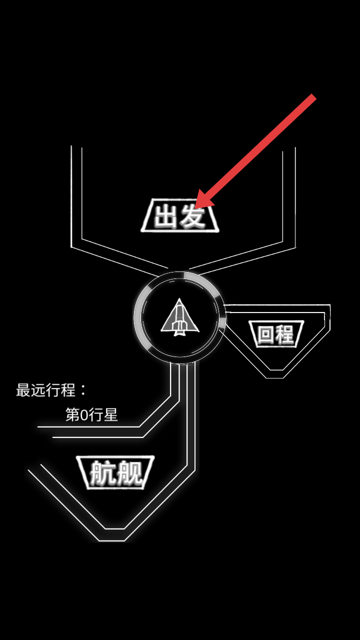 1、在太空导航界面,点击上方标有【出发】的按钮,启动飞船,正式开启宇宙行星的冒险探索之旅。