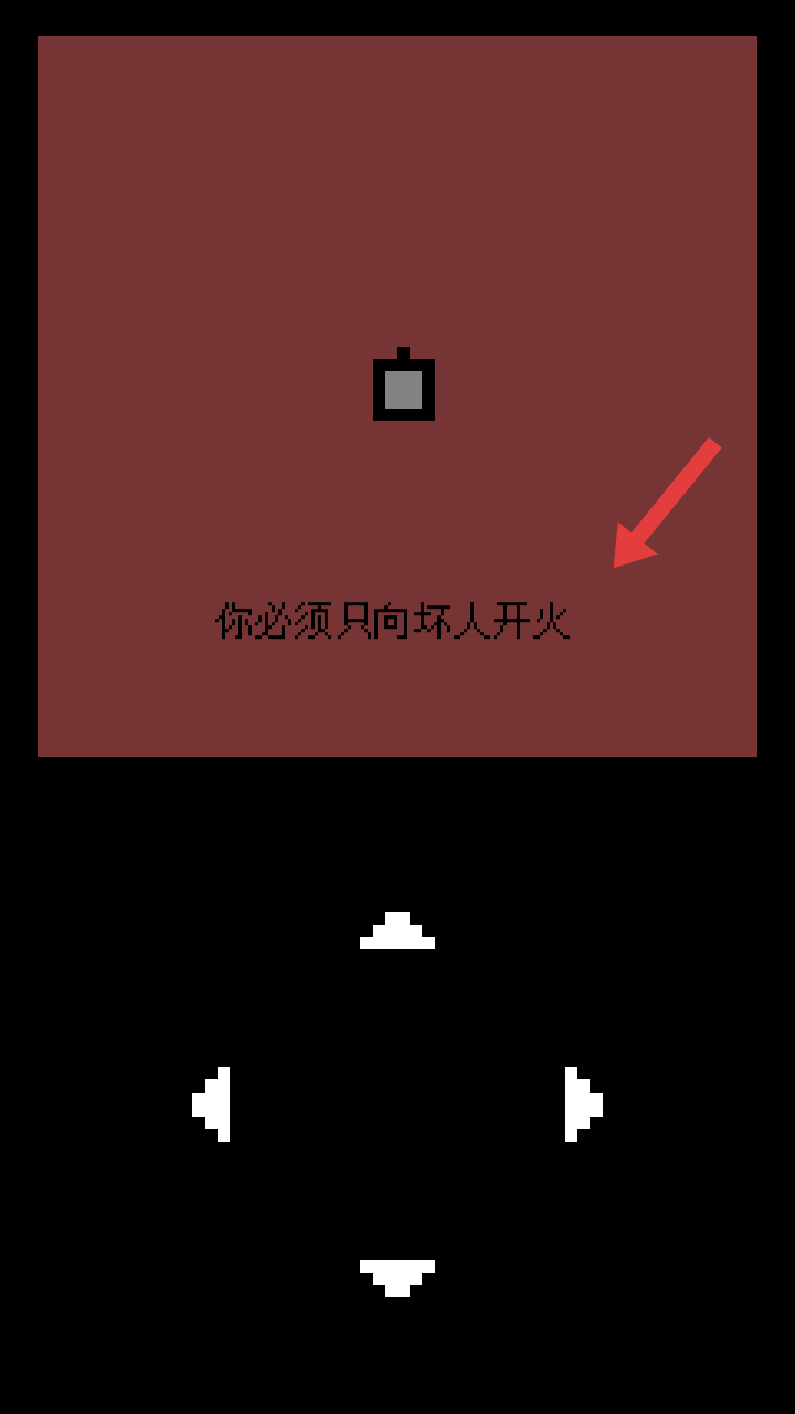 2、在六十四点零的游戏教学中,棕色背景界面提示“你必须只向坏人开火”,牢记射击规则,辨别攻击目标。