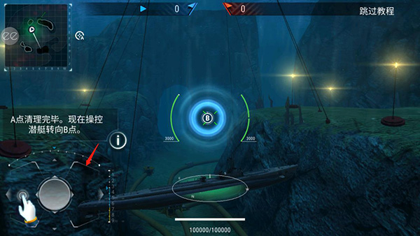 3、当前区域清理完毕后可以操作潜艇掉头去另外一个区域。