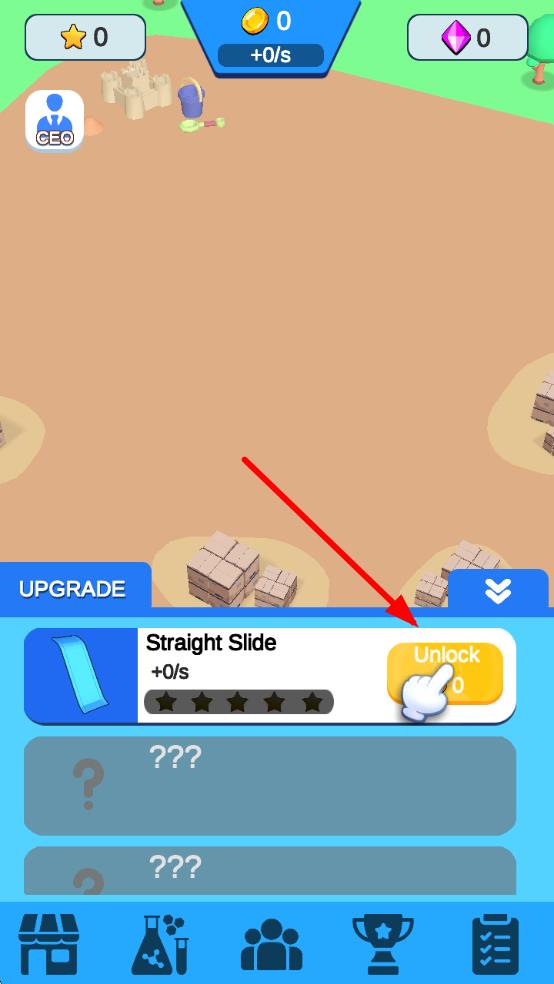 2、使用金币升级滑梯材质与特效,招募员工负责清洁维护,通过广告宣传吸引更多游客前来游玩。