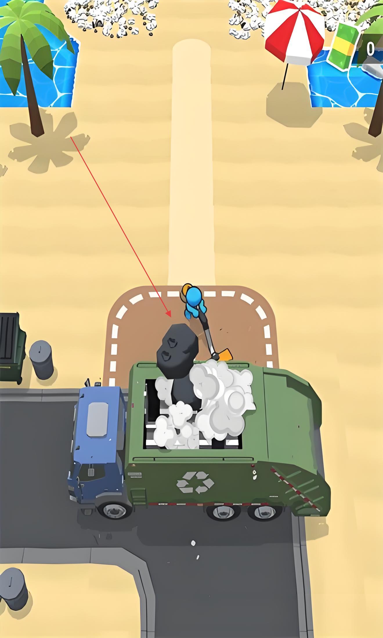 2、当垃圾收集量达到一定规模后,使用赚取的金钱解锁垃圾车,利用垃圾车的大面积清理功能高效处理堆积垃圾,同时合理规划清理路线以提升单位时间内的垃圾收集效率。