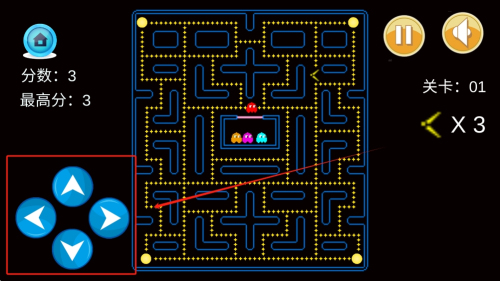 3、通过虚拟方向键操控剪刀侠移动,灵活穿梭于错综复杂的通道中。