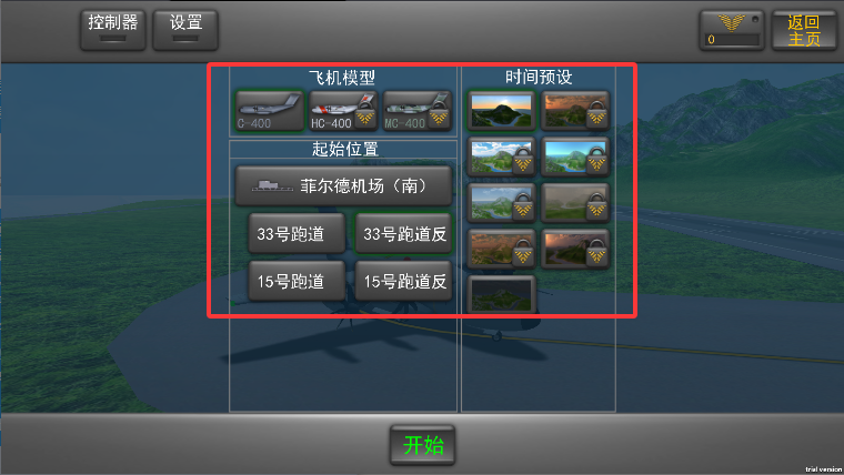 2、选择好地图和飞机模型等选项后,点击下方开始,开始游戏。