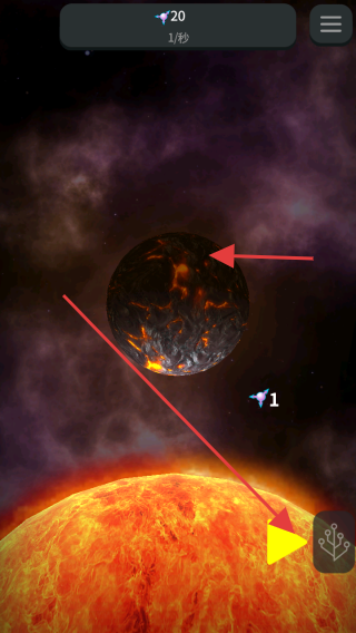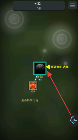 1、点击星球(如带有火焰纹理的星球),搭配右下角【生命科学之树】相关功能,开启星球探索或改造流程。