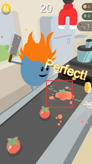 3、然后就是切水果了,切割迎面而来的水果和蛋糕来进行榨汁,但不要切到电器哦。