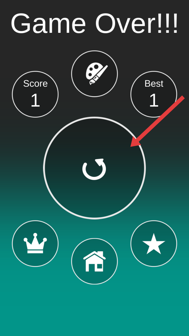3、点击中央【重置图标】重新挑战;可查看【Score】当前分数、【Best】历史最佳成绩,也能通过房屋图标返回主页。