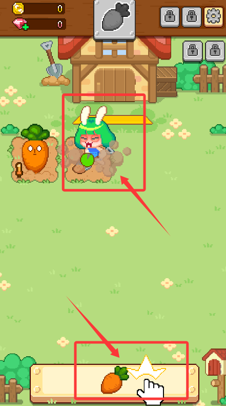 1、基础玩法是通过点击屏幕种植作物,随着玩家点击次数增加,作物会逐渐成熟,收获成熟作物可以获得金币奖励。