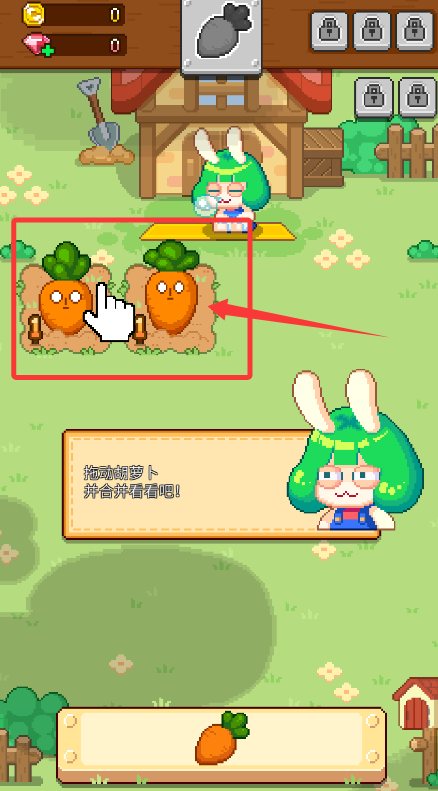 2、将两个相同等级的作物拖动合并,可以合成更高等级的稀有作物,每次合成都有机会获得特殊品种,充满了惊喜。