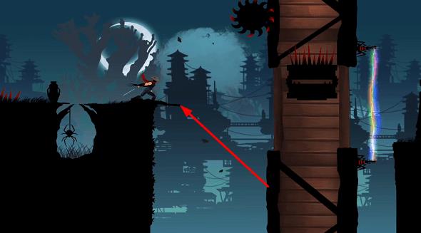 3、进入场景后,通过虚拟摇杆控制角色移动,点击【手里剑按钮】远程攻击敌人,滑动屏幕触发暗杀指令,利用地形阴影避开巡逻守卫的视线。