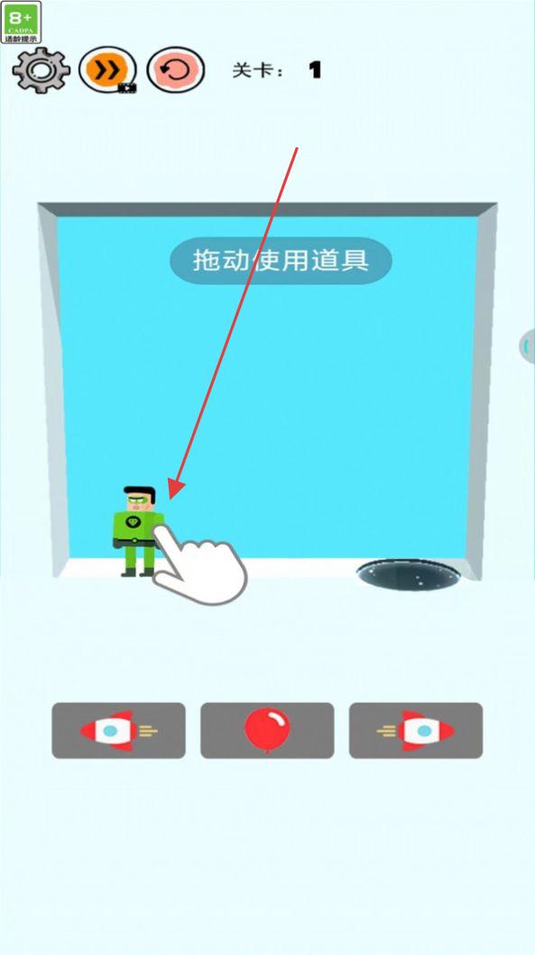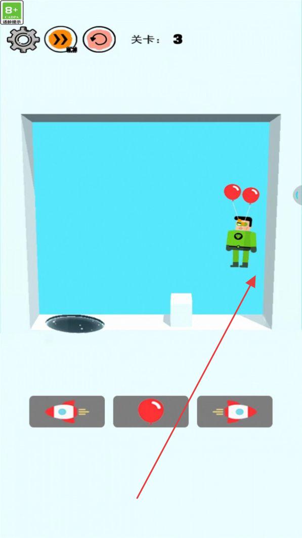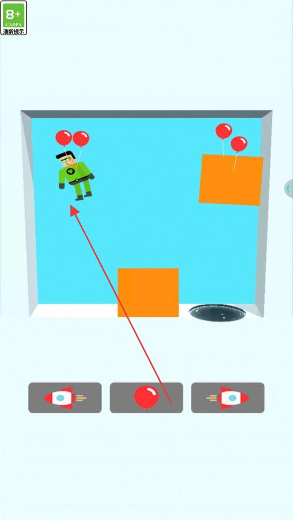3、将小男孩精准送入传送门即可通关,通关时未碰撞障碍可获得三星评价,解锁“彩虹气球”“火箭背包”等特色道具。