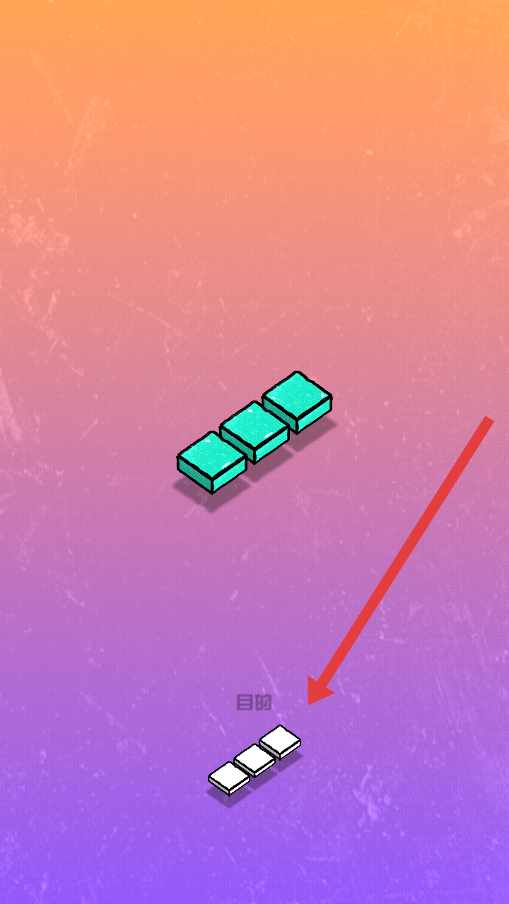 3、遵循规则,通过合理移动,将三个青色平铺方块转变为白色,实现【目的】所示的最终形态。