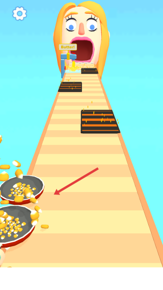 2、双维度操作挑战:既要躲避障碍保持跑酷连贯,又要兼顾爆米花制作进度(如调整火候、收集玉米原料),双重任务设计提升玩法独特性与操作深度。