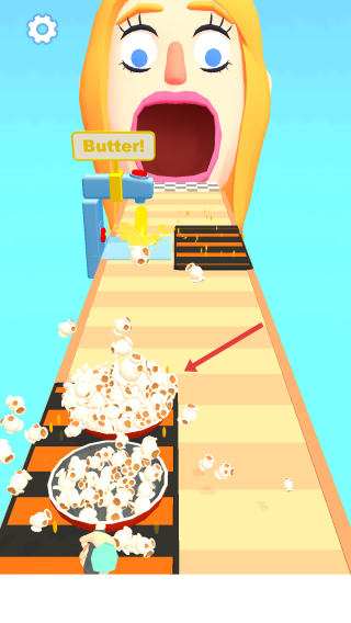 3、加工成型:经黄油装置,玉米粒变为爆米花,推进关卡。