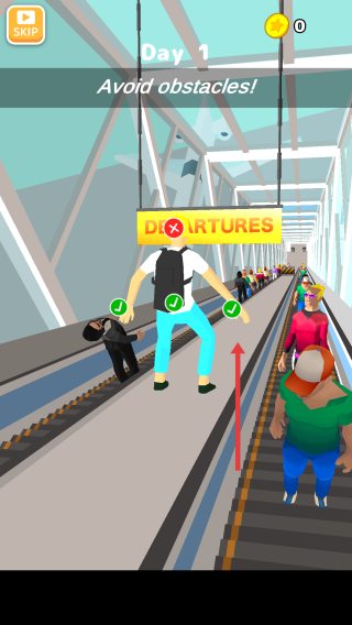 3、障碍躲避:在通道内避开人物等障碍,遵循“Avoid obstacles!”提示持续前进。