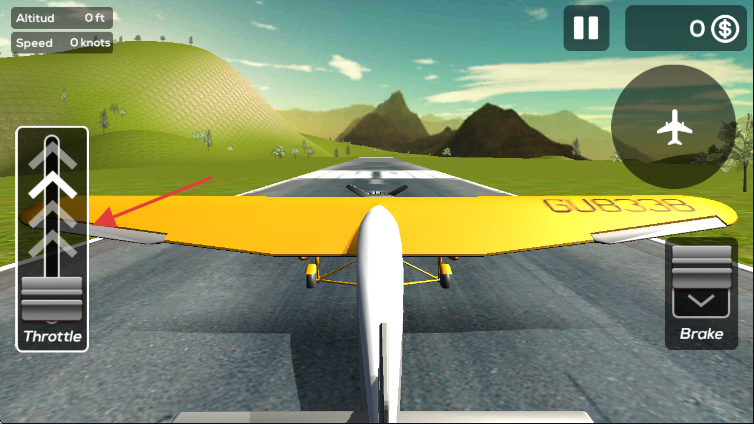 2、通过左侧【Throttle】控制飞机油门,调整飞行动力,准备起飞。