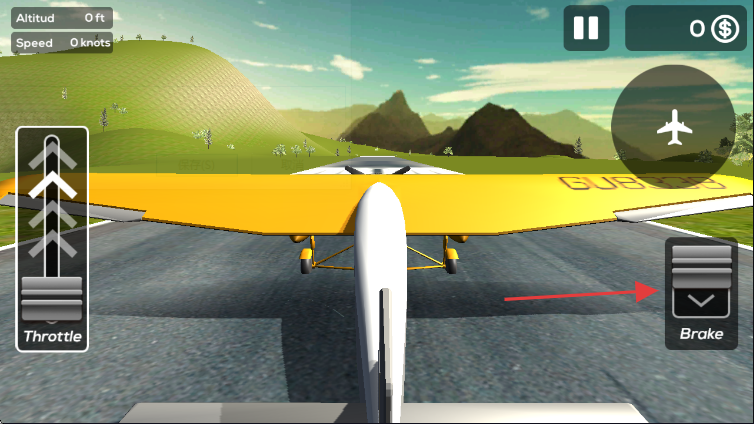3、需要刹车时,点击右侧【Brake】按钮,使飞机在跑道上减速或停止,确保操作安全。