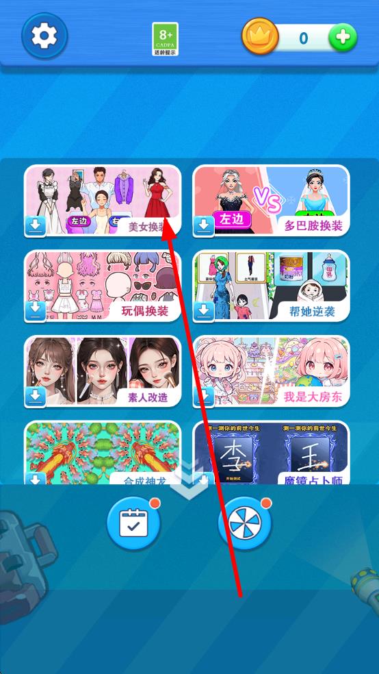 1、进入游戏后点击“开始搭配”,在衣柜界面浏览上衣、裙子、鞋子等分类,点击选中服饰为角色穿戴。
