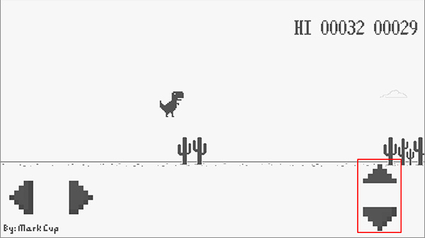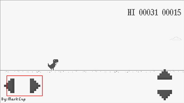 3、当小恐龙在遇到障碍物时,我们可以点击右侧的按钮跳跃跨过障碍物。