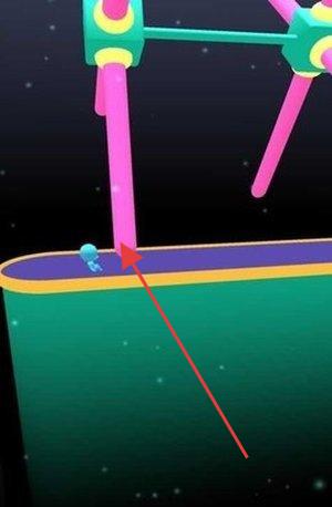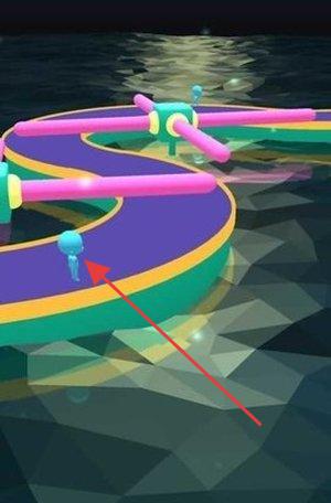 3、面对垂直赛道,操作蓝色角色,顺着箭头,避开粉色障碍,在彩色跑道上冲刺闯关。