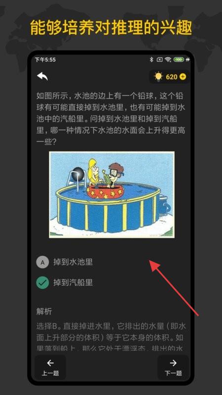 2、选项选择判断:面对每个关卡的问题,从几个选项中选择正确答案,过程中训练逻辑思维能力和观察力,通过判断和推理得出正确结论。