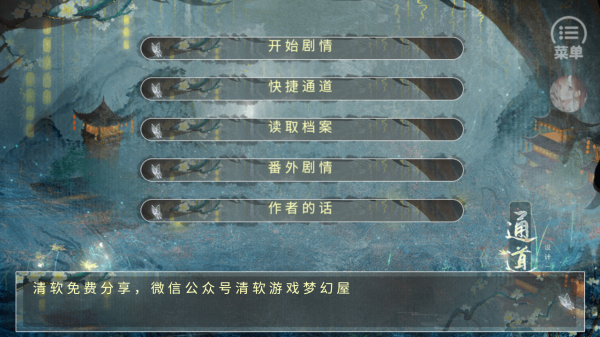 2、新剧情选【开始剧情】,续玩点【读取档案】;走特殊线用【快捷通道】,体验额外内容选【番外剧情】,了解制作点【作者的话】。