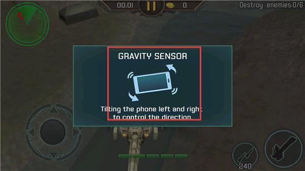 3、游戏采用重力感应和方向键控制方向,并且左右界面上有对应的武器装备和子弹按钮。