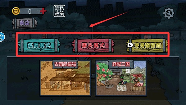 1、进入游戏后,进入主界面分别有三种模式可供选择。