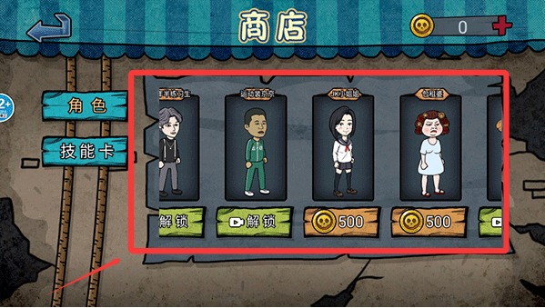 2、点击商店,可以购买各种角色,每个角色都有不同的技能。