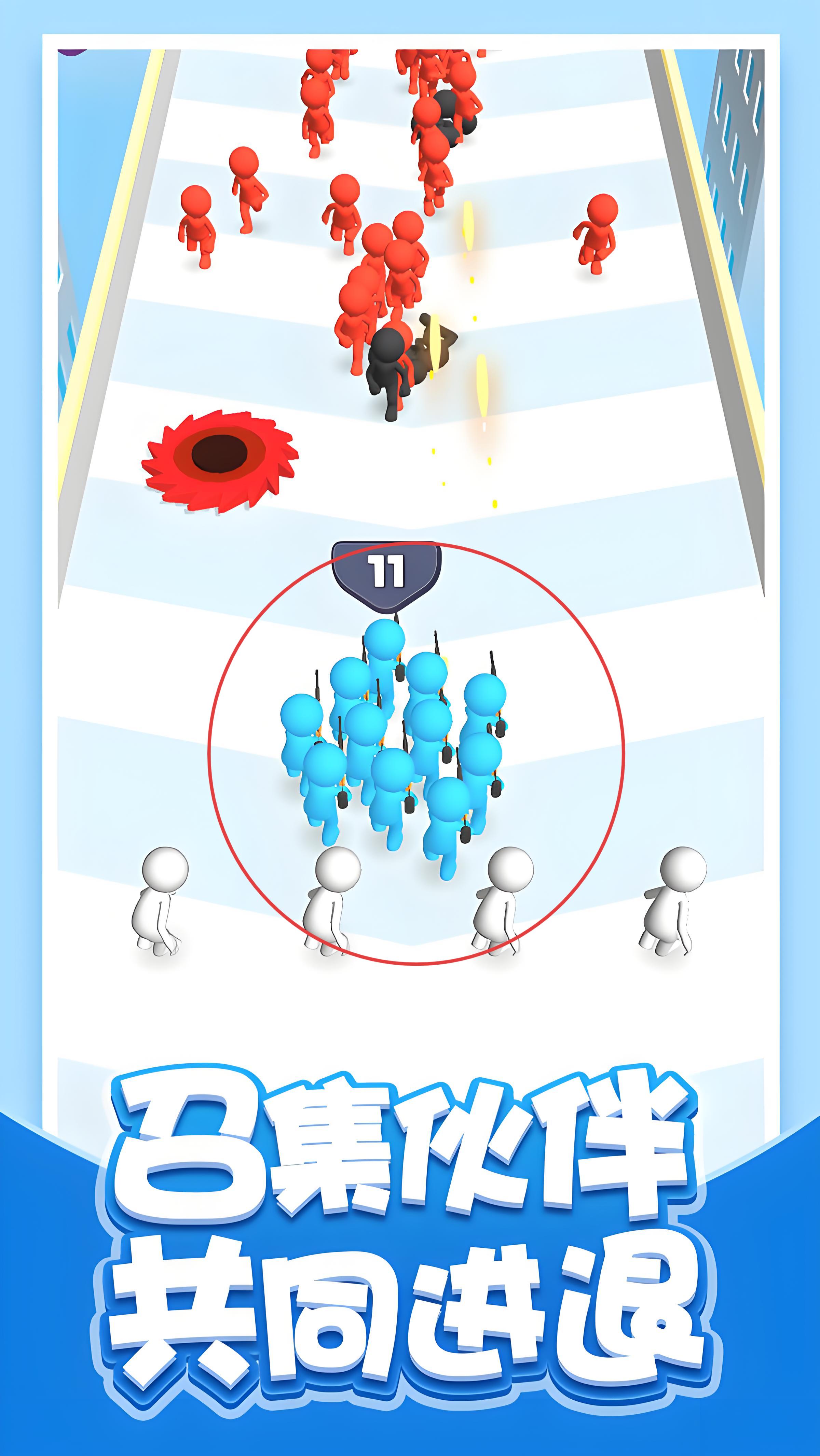 兄弟一起撤是一款以火柴人军团冲锋为核心玩法的趣味竞技作品,玩家在充满卡通风格的战场中化身为队伍领袖,通过滑动屏幕在城市废墟、丛林遗迹等多样场景中召集散落的火柴人兄弟,组成数百人规模的庞大军团突破敌方防线,深度融合即时策略与动作闯关元素,不仅需要在躲避旋转刀片、爆炸陷阱等动态障碍物的同时指挥队伍冲锋。