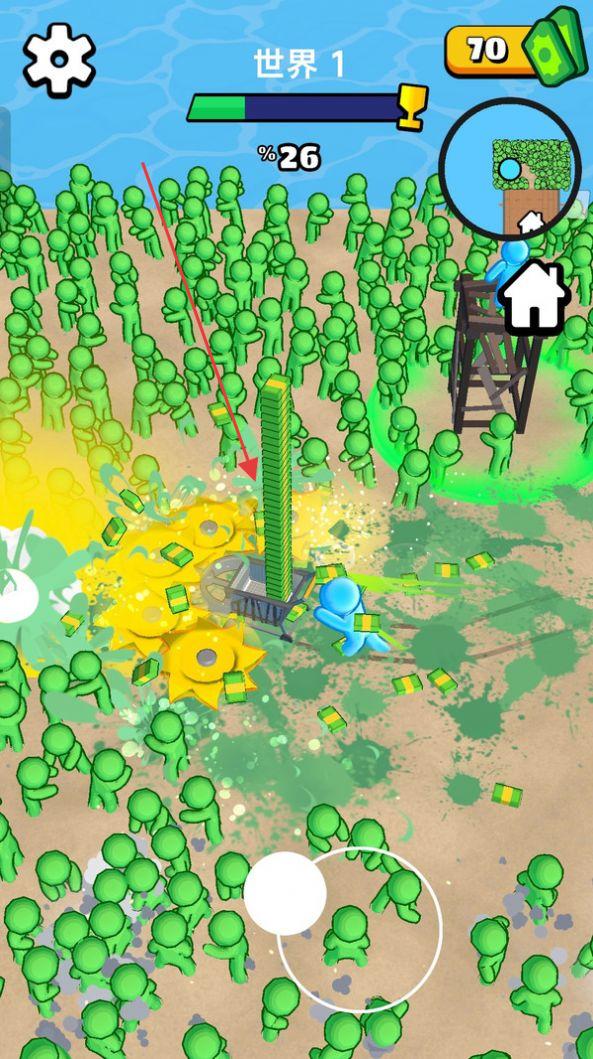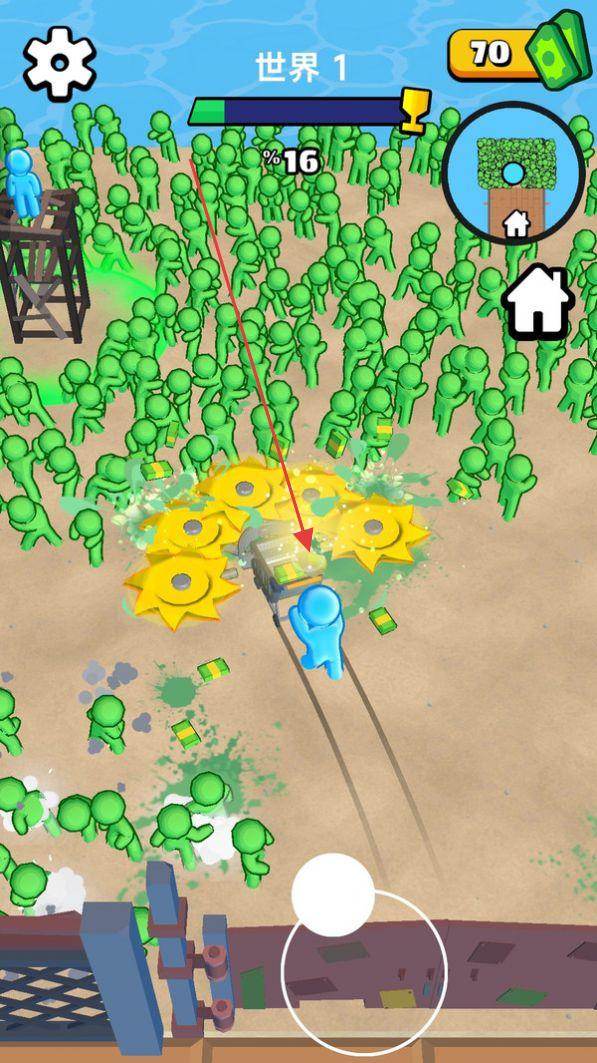 2、技能释放时机:升级解锁的范围爆炸、极速切割等技能,需在僵尸潮来临时精准释放,瞬间扭转战局。