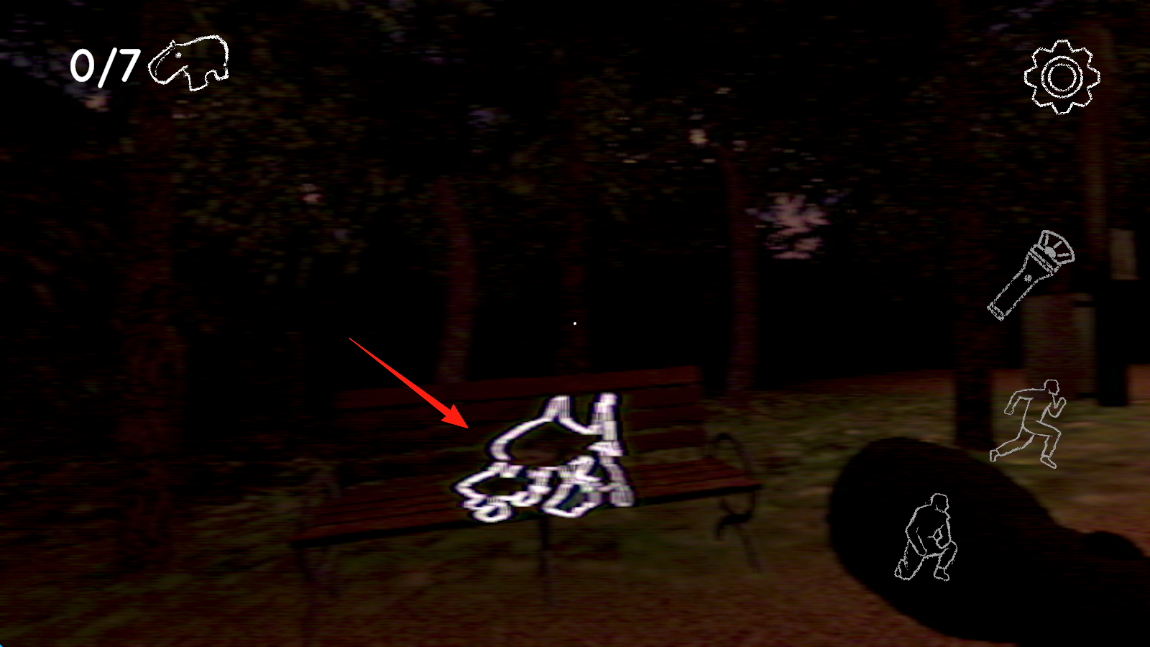 2、进入游戏场景,借助按键探索,留意长椅等位置,收集河马完成任务。