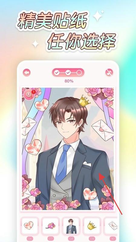 1、选喜欢的画作,用精美贴纸装饰,完成后保存,体验贴图乐趣。