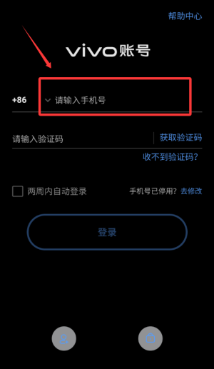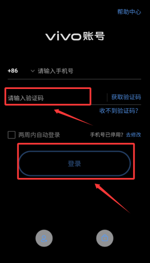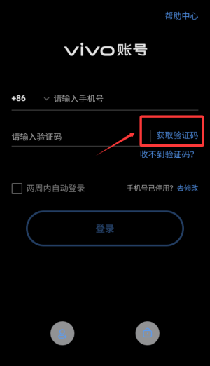 1、输入手机号后点击获取验证码,准备登录vivo账号。