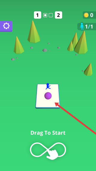 1、Level1中,按“Drag-To-Start”指引,拖动紫色球(红箭头指向),开始推球闯关,触发战斗。