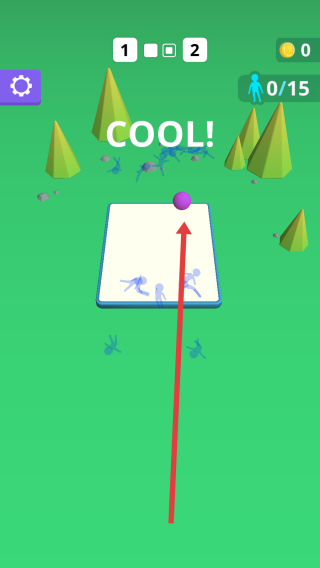 2、推球过程中,撞击敌人(蓝方),达成“COOL!”效果,消灭对手,推进关卡,完成0/15目标。