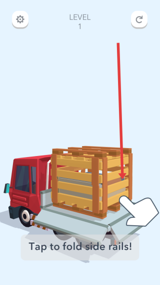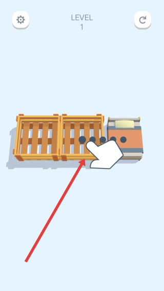 1、在游戏Level1中,按指引拖动货物(红箭头指向),放置到卡车货厢,完成装载准备。