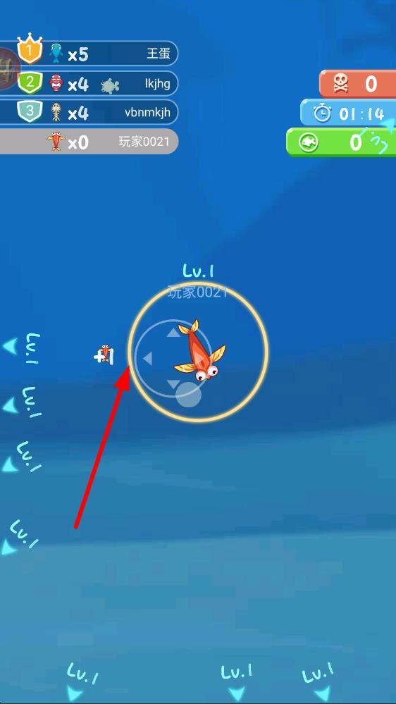 1、体型压制策略:优先吞噬带蓝色光环的稀有鱼类,其进化效率是普通鱼的2倍,在掠食者靠近时,利用体型差撞击小型鱼制造逃生间隙。