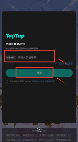 2、点击红框标注的TapTap登录按钮选择登录方式。