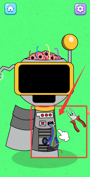 3、根据指示,需要用上方工具钳子,对机器人身上彩色线路等部位动手,完成化妆。