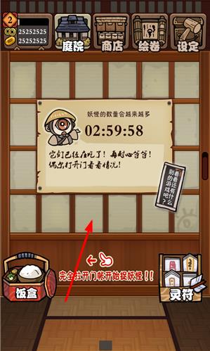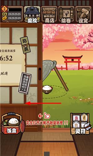3、放置食物后耐心等候,适时拉开门观察妖怪聚集情况,待它们进入陷阱范围,迅速滑动木棒罩住妖怪,拖动至篓子完成捕捉,若不满意可花费2个小判重新捕捉。