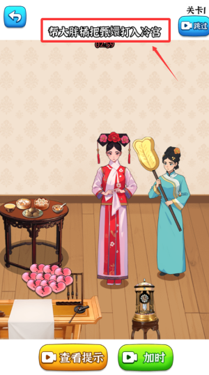2、按照任务提示操作,帮助大胖橘完成冷宫任务。