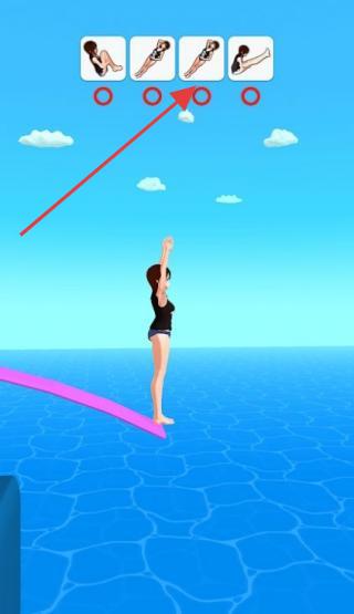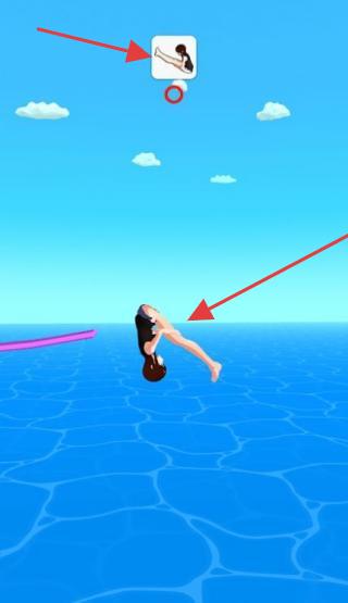 1、角色弹起后,按上方【图示姿势】调整身体,精准落入水中。