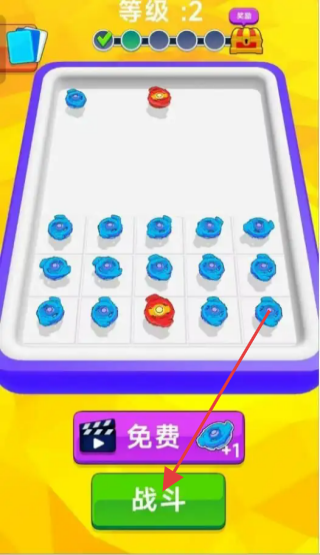 1、布置好陀螺阵容后,点击下方绿色【战斗】按钮,开启陀螺对战。