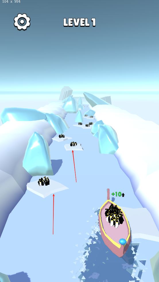1、进入游戏后在极地湖面场景中,点击屏幕左侧控制破冰船左转,右侧点击右转,撞击浅蓝色冰层开辟前进道路。