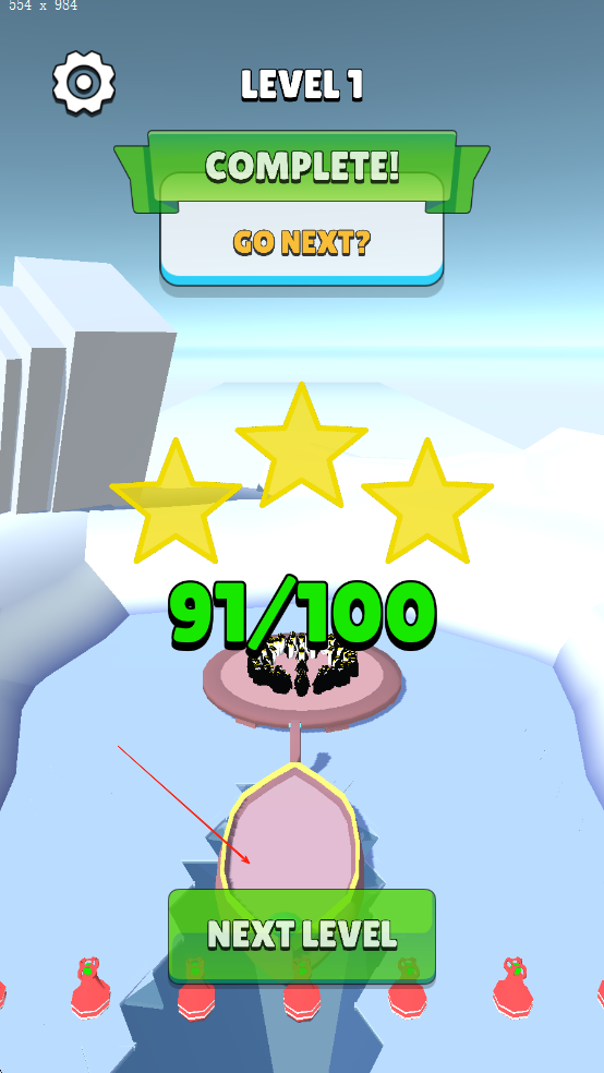 2、航行过程中注意漂浮的白色冰川,滑动屏幕躲避撞击,同时靠近粉色光圈中的企鹅,成功救援可积攒能量值。