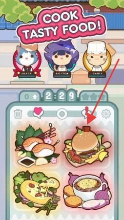 2、执行“COOK TASTY FOOD”,选食材、按步骤烹饪,做出美味菜品接单。