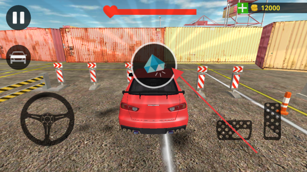 1、通过左侧方向盘控制方向,右侧踏板控制车速,驾驶红色车辆穿越障碍,朝着前方蓝色钻石道具前进。