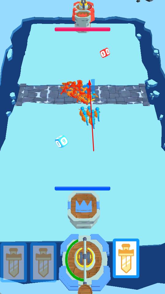 3、敌方有塔楼及士兵防守,需合理规划兵力部署路线,利用骰子策略,突破敌方防御。
