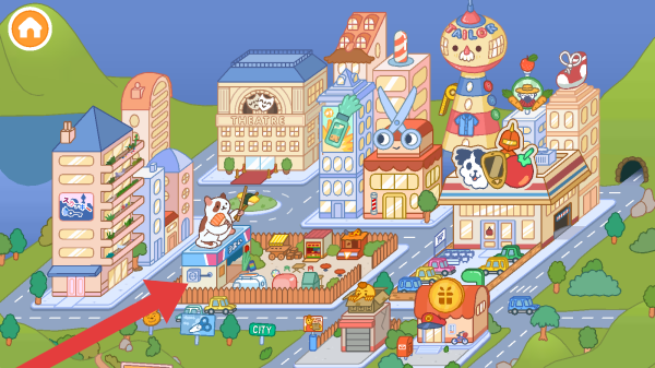 2、呈现了卡通风格的建筑(如剧院、商店等)、角色和街道布局,是模拟城市生活玩法里的典型画面,可让玩家在其中自由探索、互动。