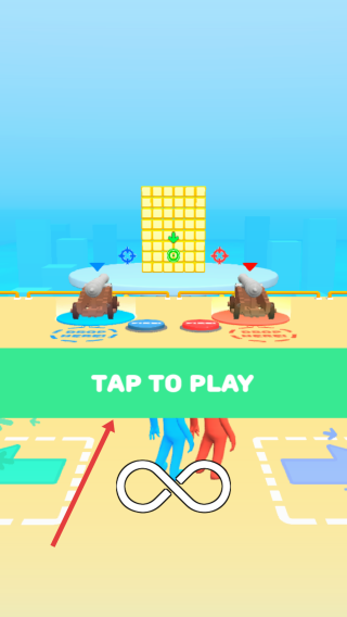1、启动关卡:点击主界面绿色“TAP TO PLAY”按钮,进入炮台对战场景。